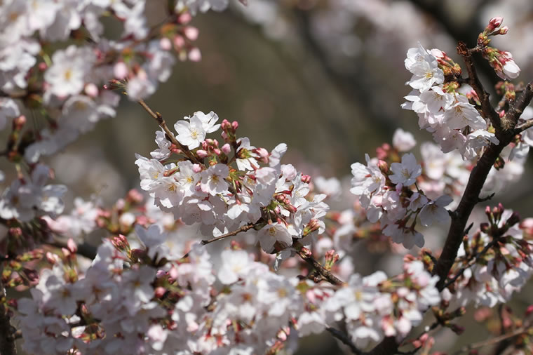 淡いピンクの桜の花とピンクの蕾が綺麗です。