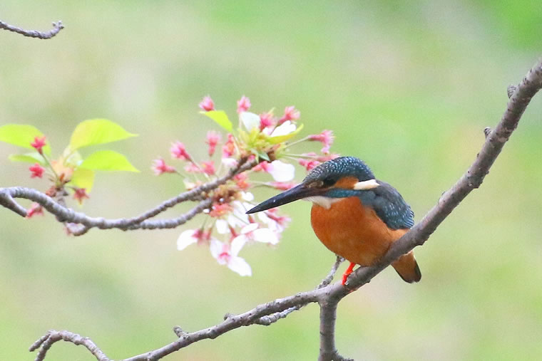 桜を背景にすると、カワセミの美しさが引き立ちます。