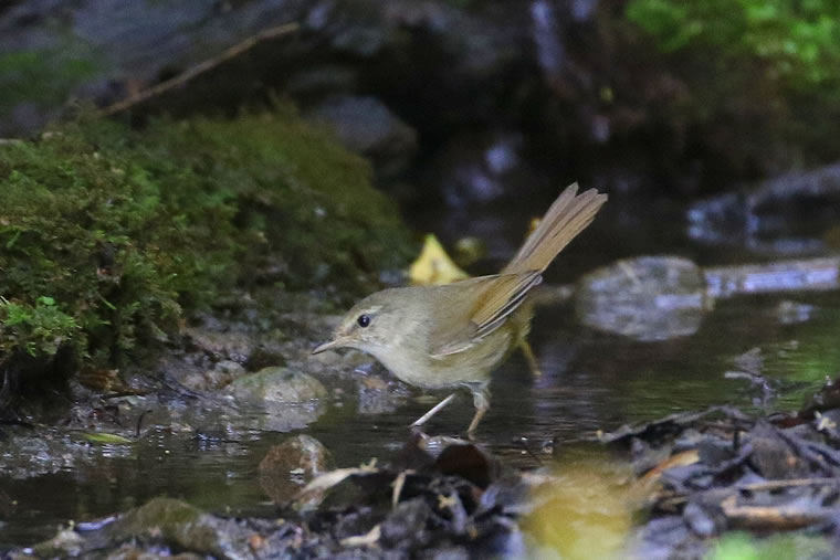 普段は木陰を飛び回り、ほとんど姿を見せてくれないウグイスですが、水場でしばし水浴びを楽しんでいました。