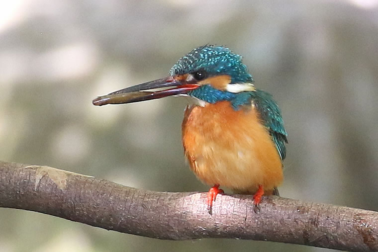 小さなお魚を咥えてます。大食漢のカワセミには、物足りない大きさです。
