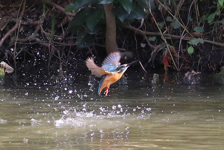 小魚などの獲物を捕るとき以外にも、水面に飛び込むことがあります。