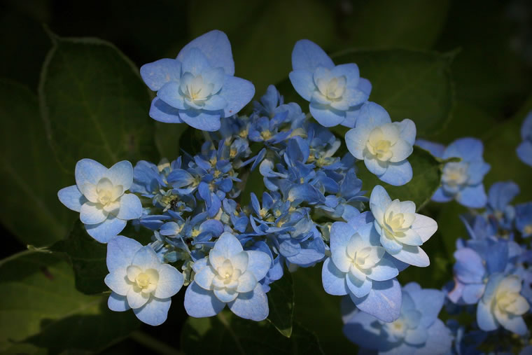 一つ一つの花が星形で、ブルーと白の色合いが綺麗です。毎年、見たくなるアジサイの一つです。