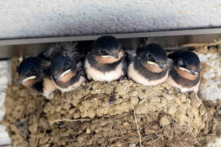 低いところにツバメの巣があると教えてもらい、行ってみると巣立ち間近と思われるほど大きくなった5羽の雛たちに会えました。