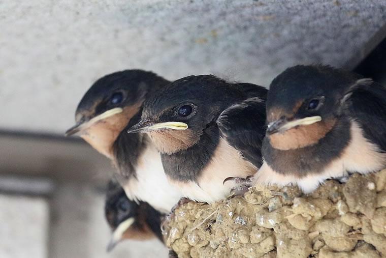 これまで“野鳥ギャラリー”に、巣材集めしているツバメは何度か登場しましたが、巣の中にいるツバメの雛たちは初登場です。