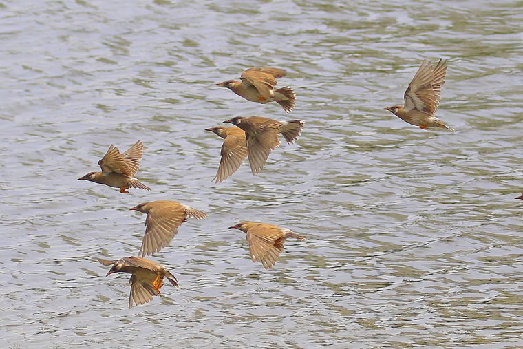 ムクドリの群れの中にコムクドリが混ざっていないかと探しましたが、いませんでした。