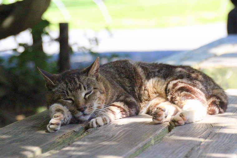公園の片隅の日陰にいた猫さん、気持ちよさそう!
