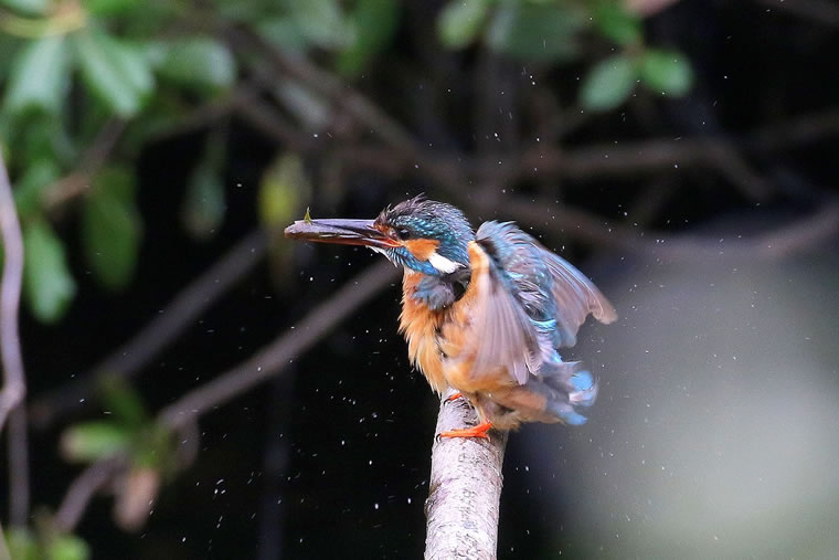 もう一度水面に飛び込み、今度は小魚を捕らえました。