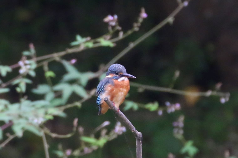 ハギでしょうか。秋の花をバックのカワセミさんです。