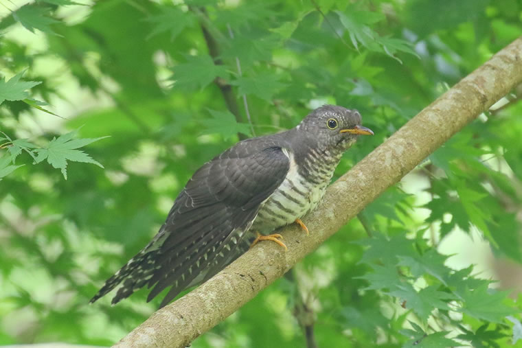 ベテランバーダー、地元の常連さんの間でも、この鳥は、「カッコウ幼鳥では?」、「ツツドリでしょう!」、「いやいやホトトギスでしょう」と意見が分かれていて、結論が出ていません。
