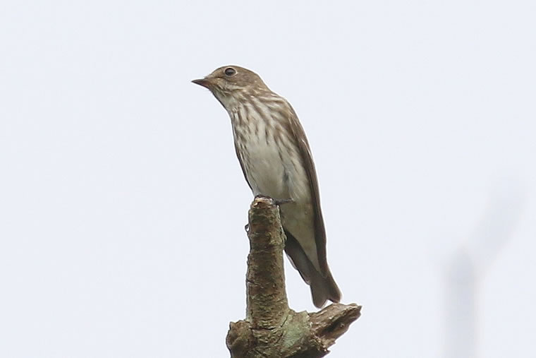コサメビタキに色彩、体型、行動などよく似ていますが、胸の縦斑がはっきりしています。