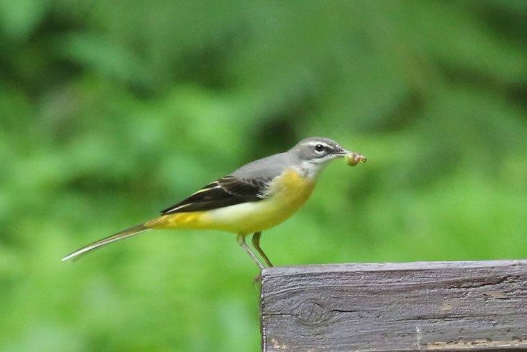 公園の片隅のベンチの上で、キセキレイが虫を咥えているのを見つけて、そっと近づきシャッター押しました。