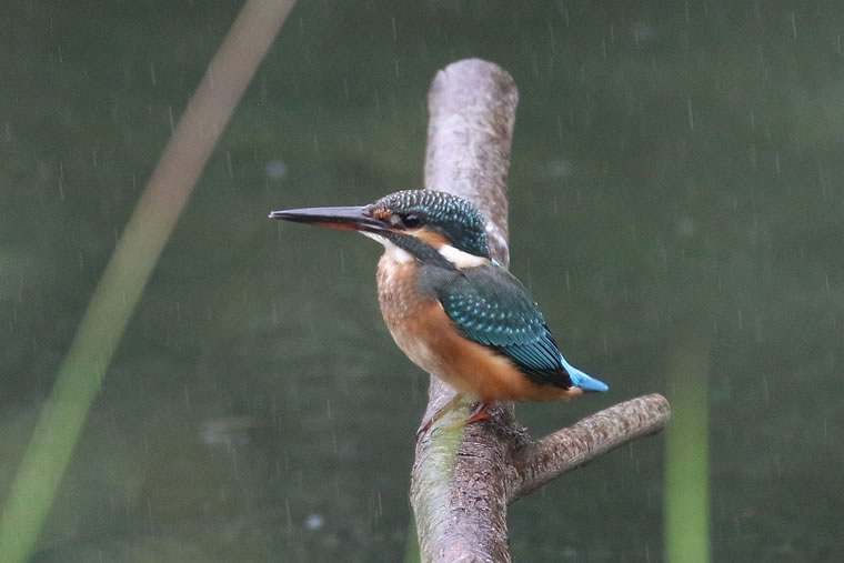 小雨の日に、珍しく近くの枝に止まってくれました。