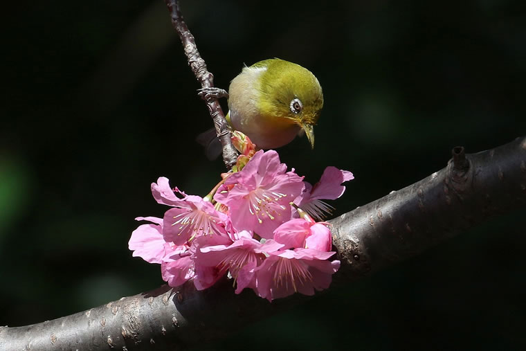 まずは横浜緋桜の蜜を求めてやってきたメジロです。