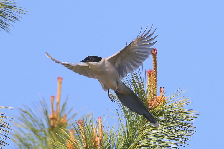 カラス科なので、美しい姿に似合わず、警戒の鳴き声は「ギューイギュイギュイ」と、美しいとは言えない声です。
