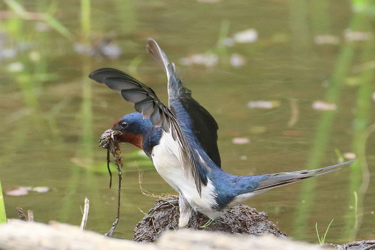 ツバメが姿を見せ始めると夏を感じます! 巣作りのため、頻繁に泥を咥えて運んでいました。