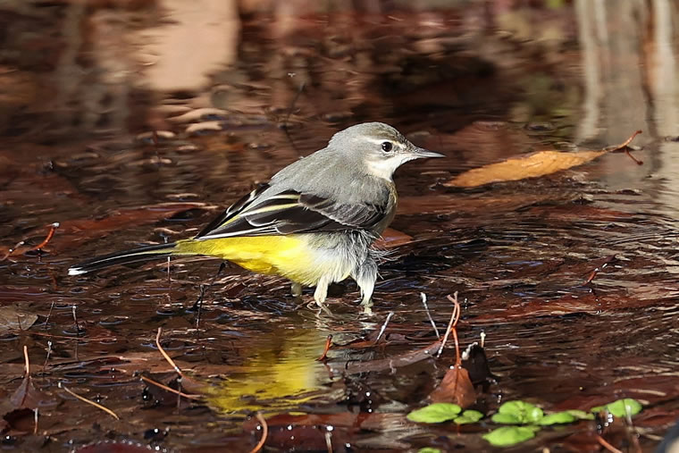 水中の葉っぱを裏返して、水中の虫を探していました。