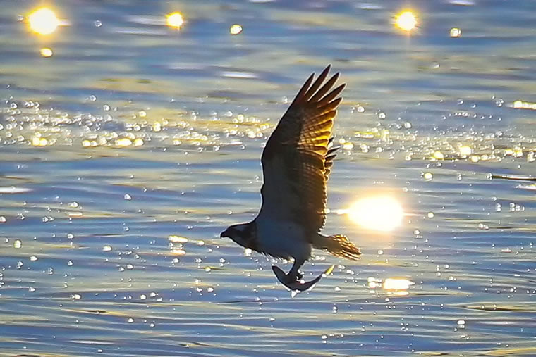 夕暮れ時に、ミサゴが獲物をゲットしてご帰宅です。
