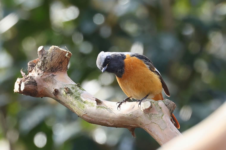 百日紅(サルスベリ)の枝に止まって、首をかしげるような仕草!