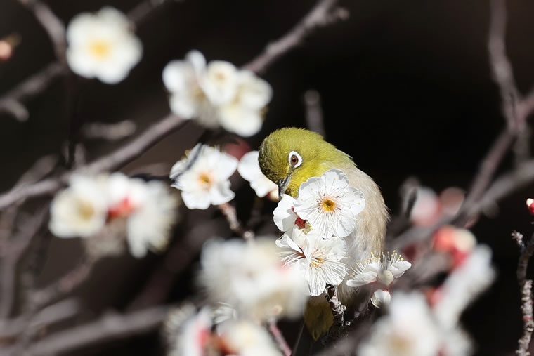 白梅にメジロが似合います。