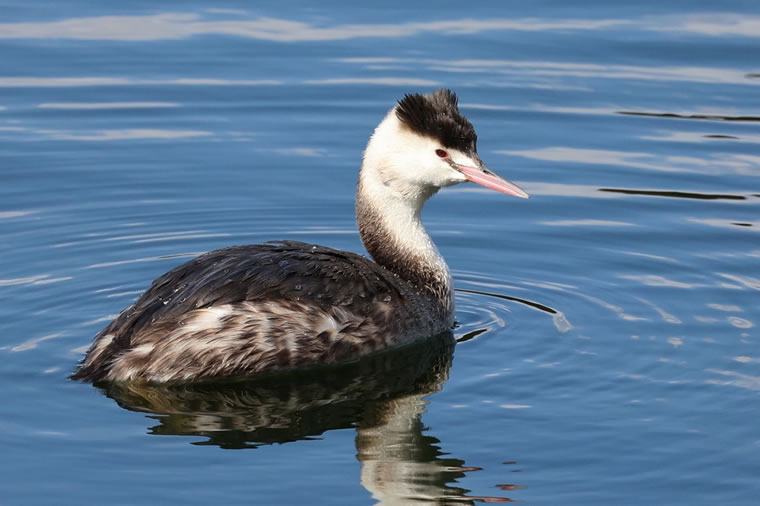 くちばしは桃色。頭上に黒色の冠羽があります。
