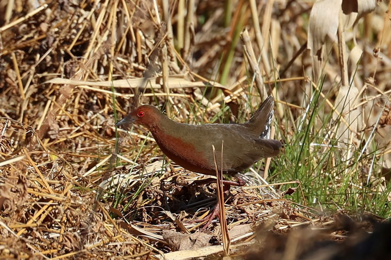 胸部や体側面の羽衣は赤褐色、淡褐色の縞模様があります。