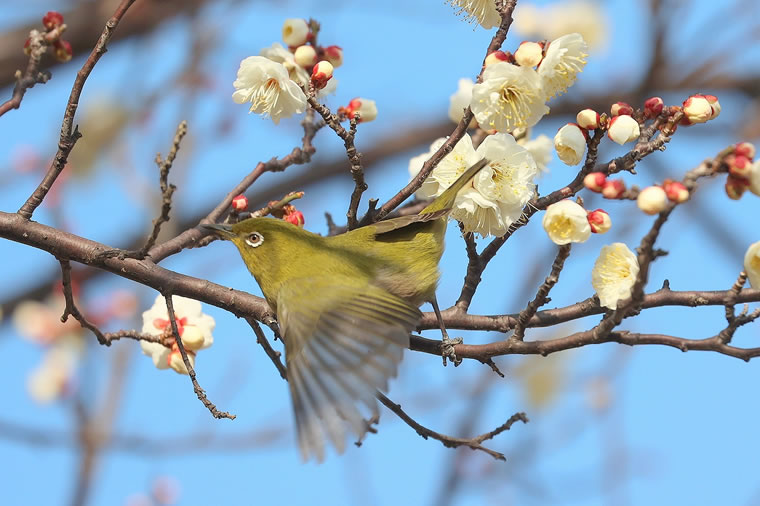 スポットによって、梅が咲く時期が違うので、まだまだ梅ジロー(ウメとメジロの写真)が楽しめます。