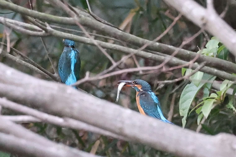 オス(左)が差し出した小魚をメス(右)が受け取りました。