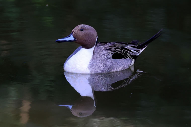 ここの池にいた、シックな色合いのカモです。 水面のリフレクションも綺麗でした。