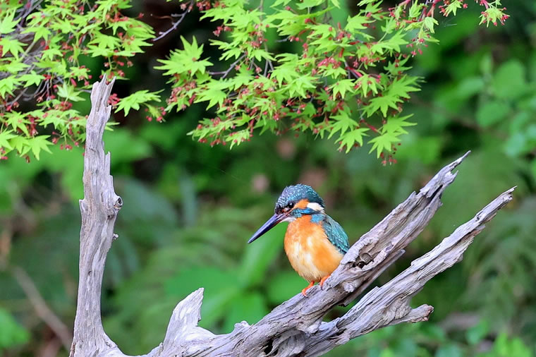青紅葉を背景に、お気に入りの枝に止まってくれました。