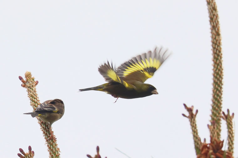松の木のテッペンからの飛び出しの瞬間が撮れました。