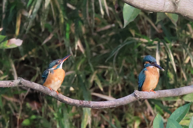 オスの嘴の先には泥がついています。オスは巣穴を作っている最中のようです。
