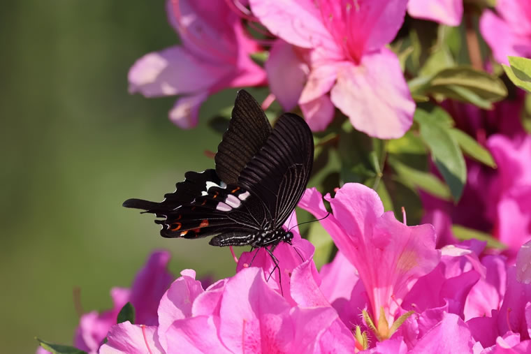 サツキの蜜を吸いに、何匹(何頭)もアゲハ蝶が飛び交っていました。
