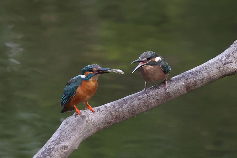 カワセミ幼鳥は巣からでてきた直後は、自分で獲物を捕ることができないので、親から頻繁に給餌してもらわなければなりません。
