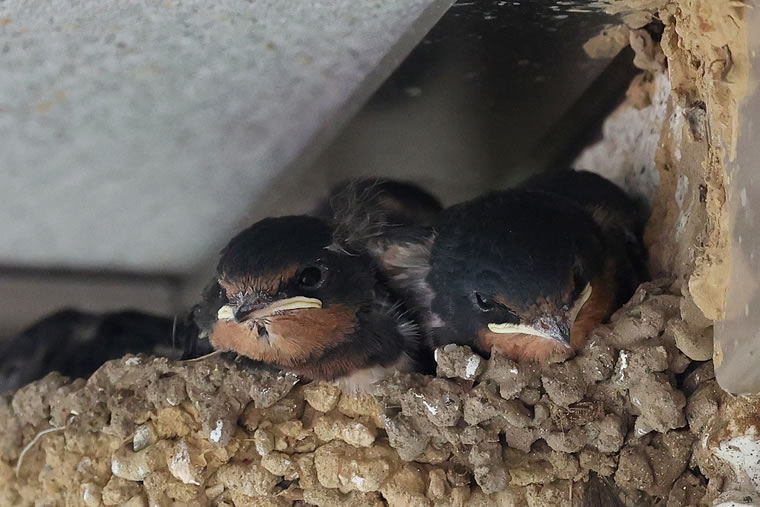 このツバメの巣は、手が届きそうなところにあるので、雛の表情がよくわかります。
