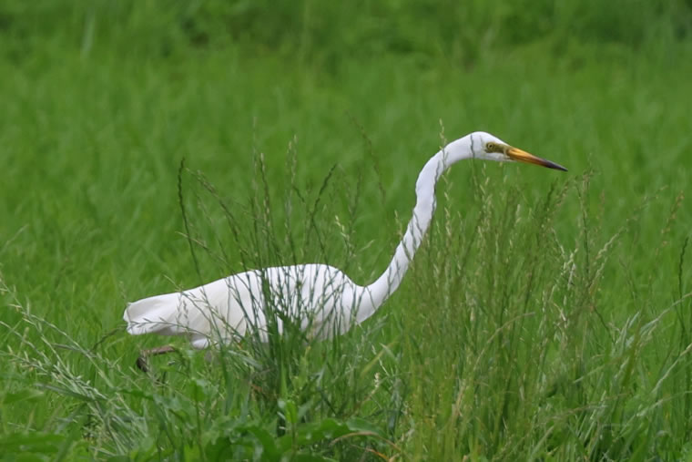 すぐそばの休耕田では、ダイサギが獲物を探していました。