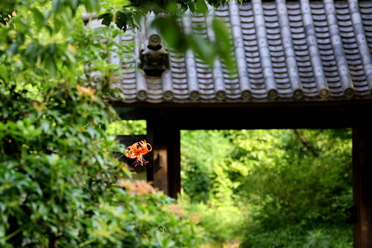 三渓園の南門から少し入ると、門の前の鮮やかなオニユリが目に留まりました。