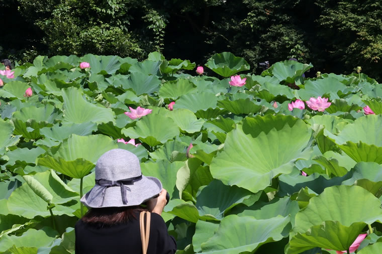 この日は、観蓮会が開催された最初の土曜日とあって、早朝から多くのカメラマンが綺麗なハスの花を狙っていました。