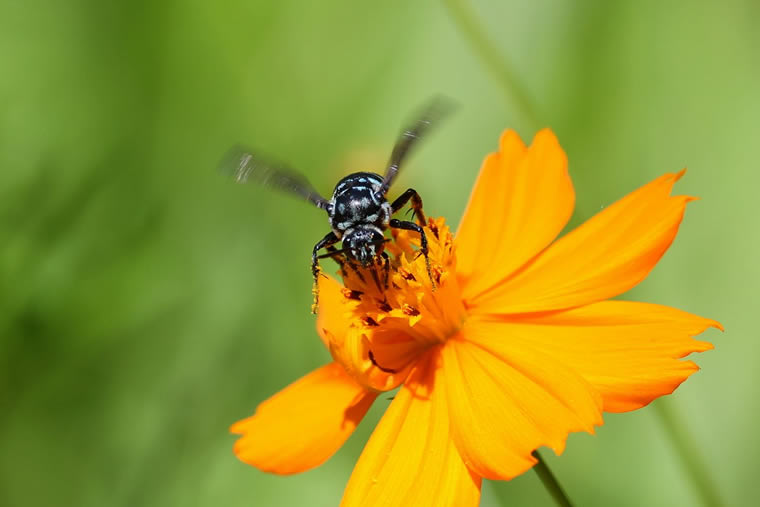 |WILD BIRDS PHOTO GALLERY(野鳥ギャラリー)|VOL.181 キバナコスモスと青い蜂|