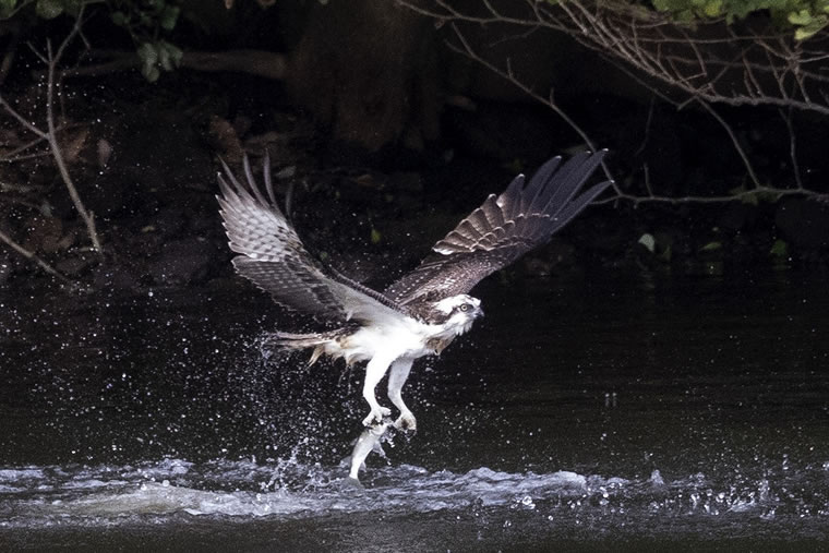 上空から水面に飛び込み、大きな魚を捕らえました。