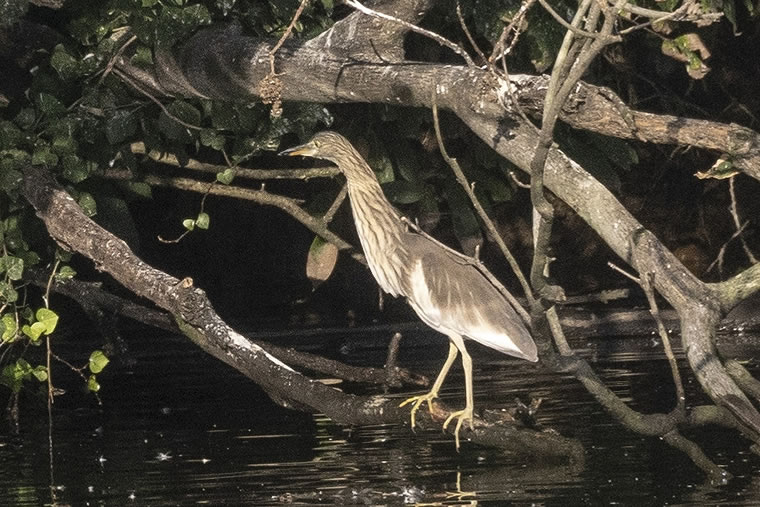 とりあえず撮影した写真を拡大して、近くのベテランバーダーさんに見てもらうと、なんと、この池では数年前に一度姿を見せたという“アカガシラサギ”であることが分かり、大興奮!