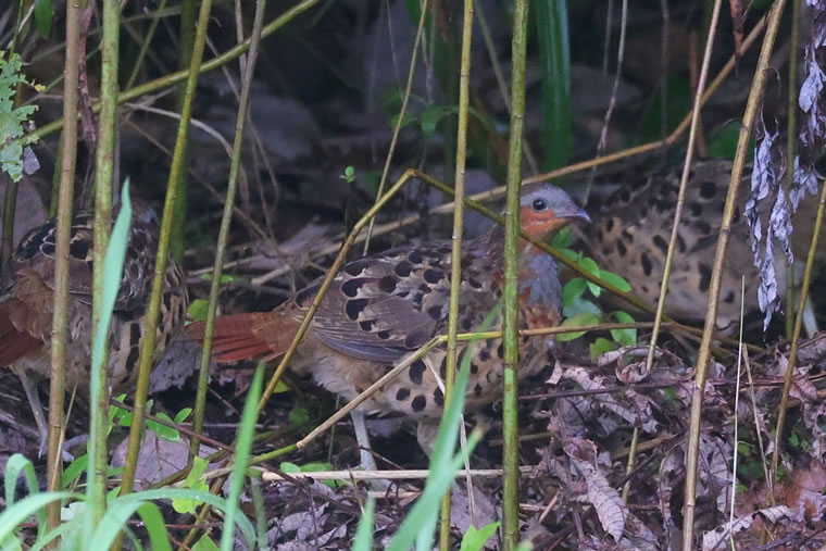 近所の野鳥観察公園の観察窓からミサゴが来るのを待っていると、目の前をハトより少し小さい茶色い鳥5,6羽が横切り、繁みの方に飛び込んでいきました。