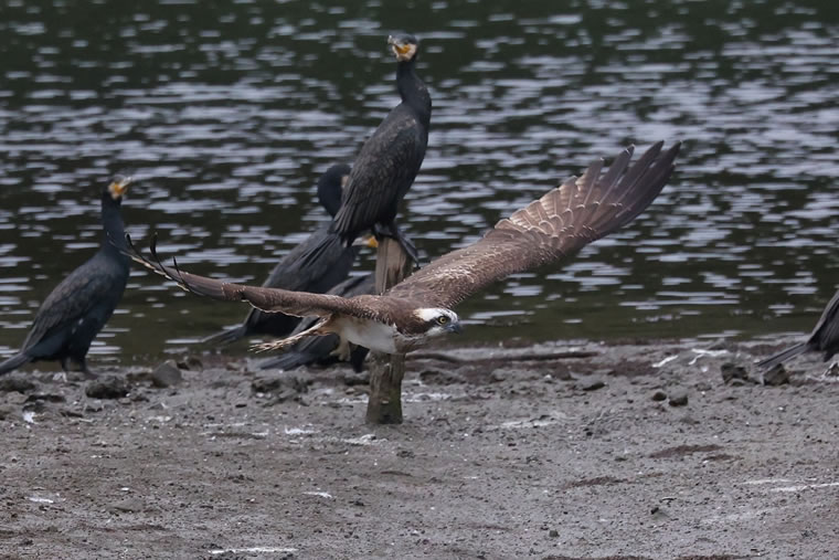 中洲には鵜がたくさんいますが、鵜には目をくれず、低空飛行で獲物に一直線!!