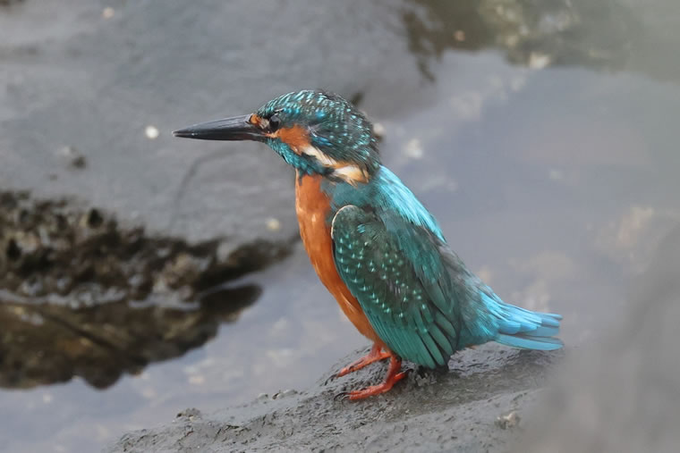 足に黒みが凝っているので、今年生まれたカワセミのようです。