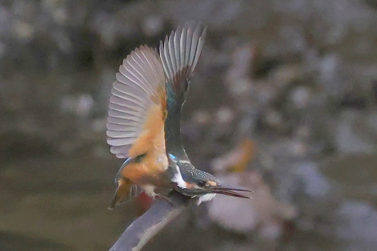 急に羽を広げて、前方を警戒するようなポーズをとりました。