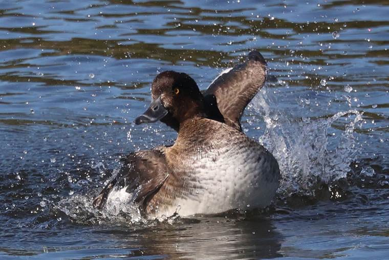 水面を叩いて、羽ばたく姿をよく見かけます。