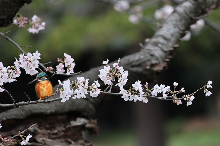 満開の桜とカワセミの夢のコラボ写真です。