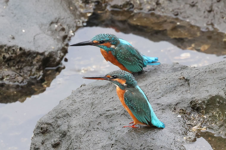 自宅のすぐ目の前の“ふなだまり公園”のカワセミのカップルです。珍しく20分近く2羽で遠くを見つめていました。