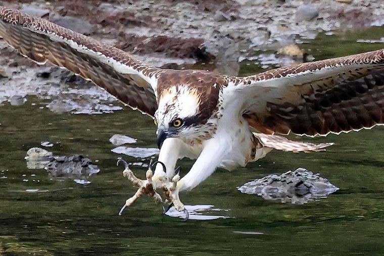 獲物を捕まえる直前に前足を延ばしているところを至近距離で撮ることができました。