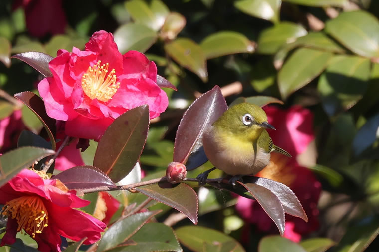 サザンカは終わりかけですが、咲いている花にメシがやってきました。