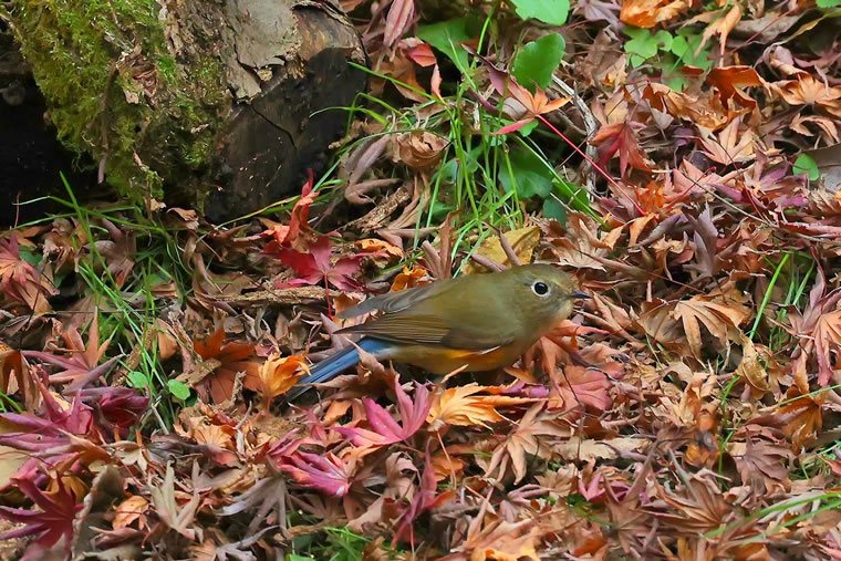 紅葉の落ち葉の上に降りてくれました。